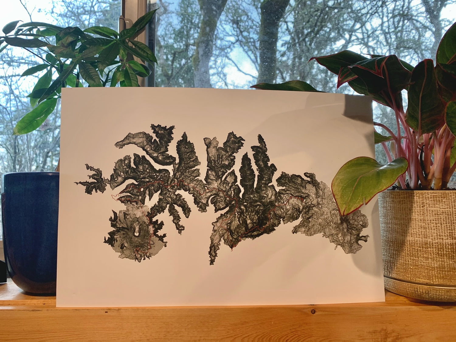 This map was created to decorate their new home and commemorate the epic 117 mile run they took between Mt St Helens and Mt Adams.
