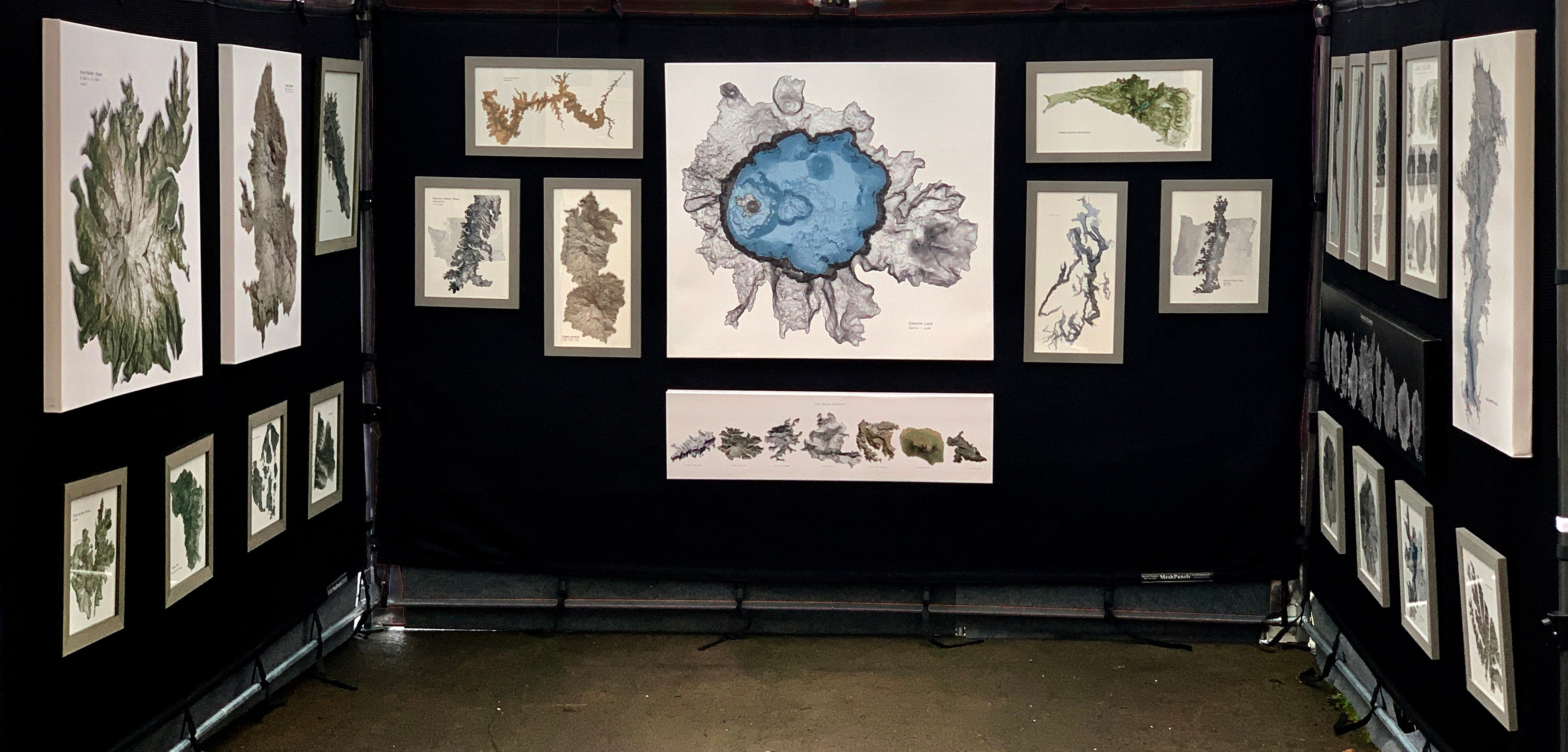 There's no equivalent to seeing work in person and learning about my artistic process. Interactions with patrons at art shows are always highlights of my year. It's also a great opportunity to see my new work before it's online and see the maps at full scale.