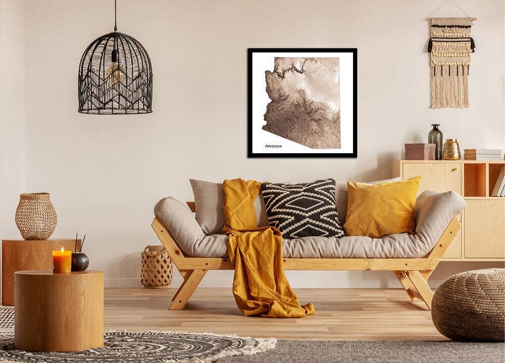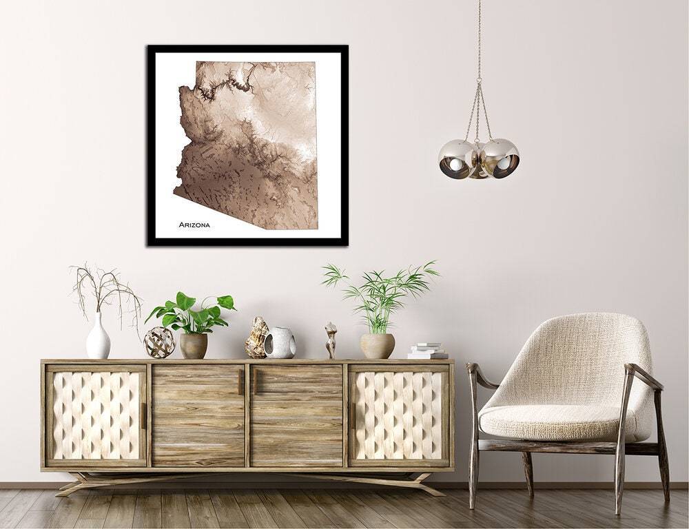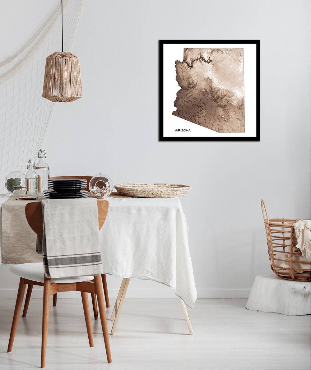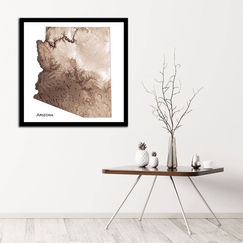 Topographic map print with our unique shading of elevation and slope to highlight natural features. Our maps have exquisite detail, whether viewed from across the room or within inches of the map.