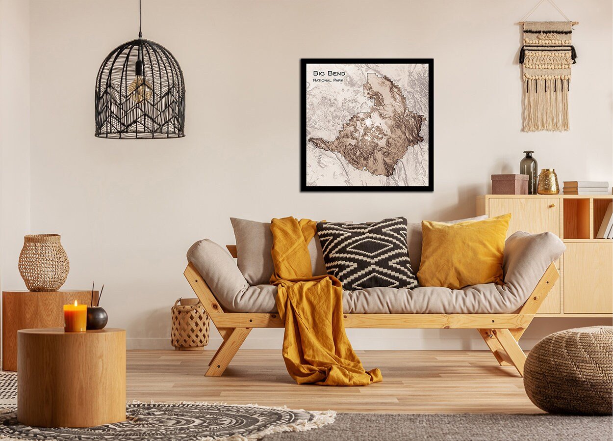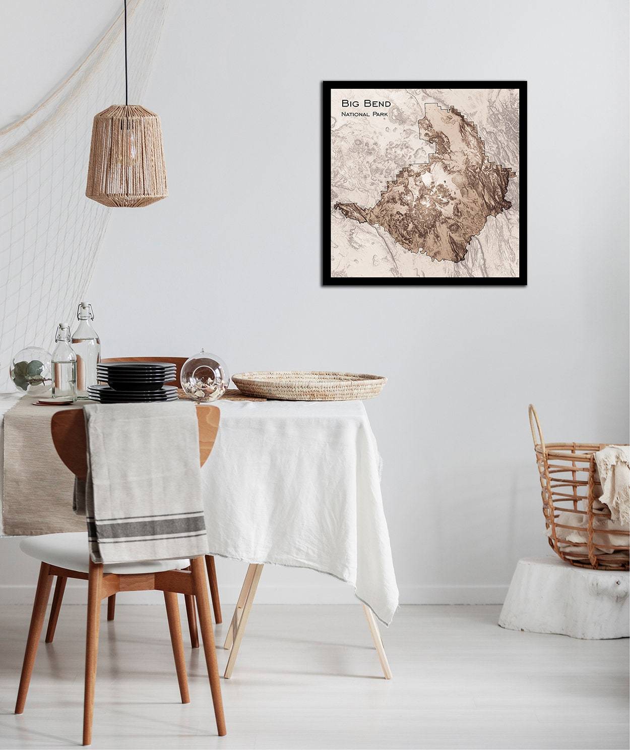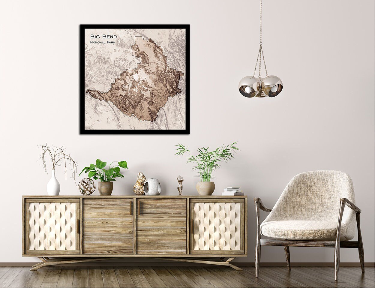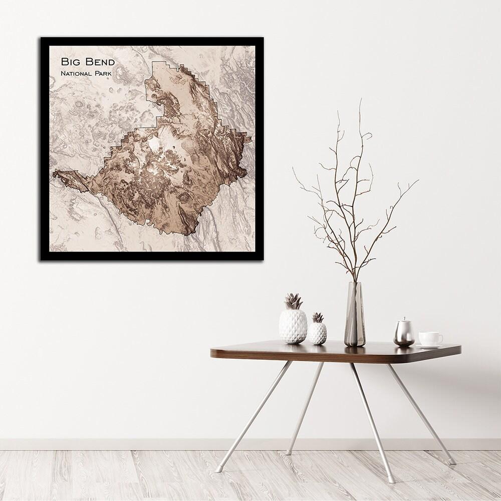 Topographic map print with our unique shading of elevation and slope to highlight natural features. Our maps have exquisite detail, whether viewed from across the room or within inches of the map.