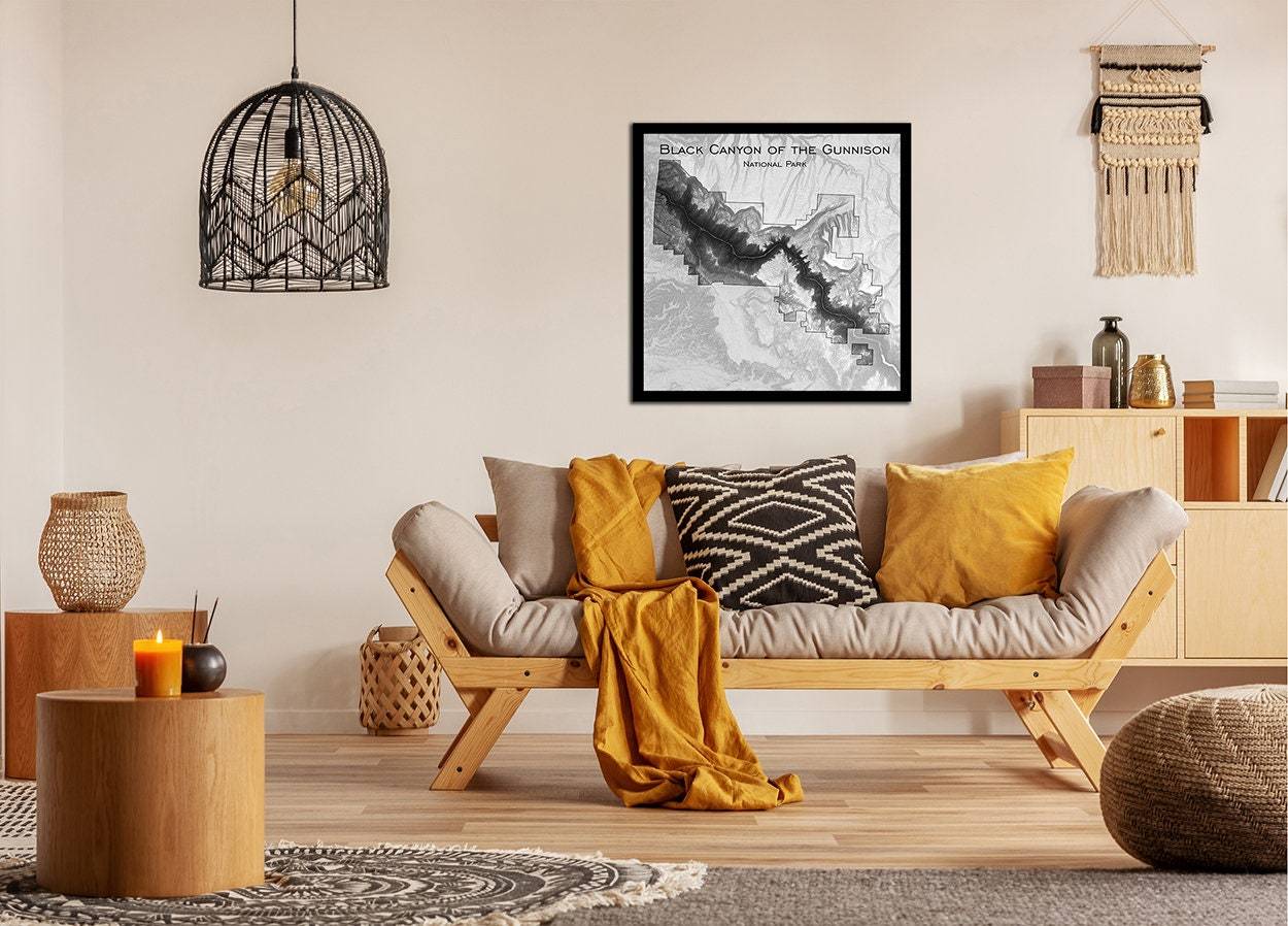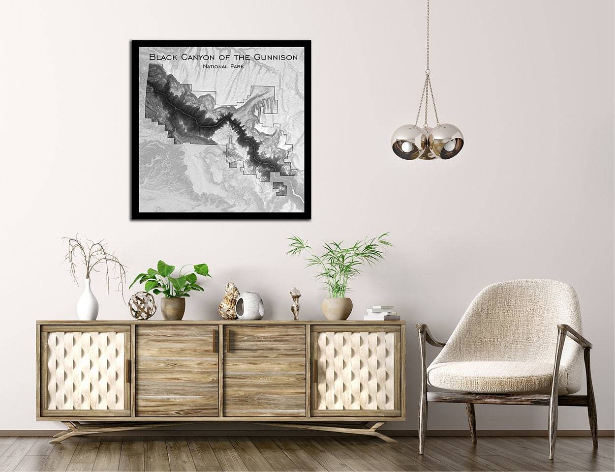 Topographic map print with our unique shading of elevation and slope to highlight natural features. Our maps have exquisite detail, whether viewed from across the room or within inches of the map.