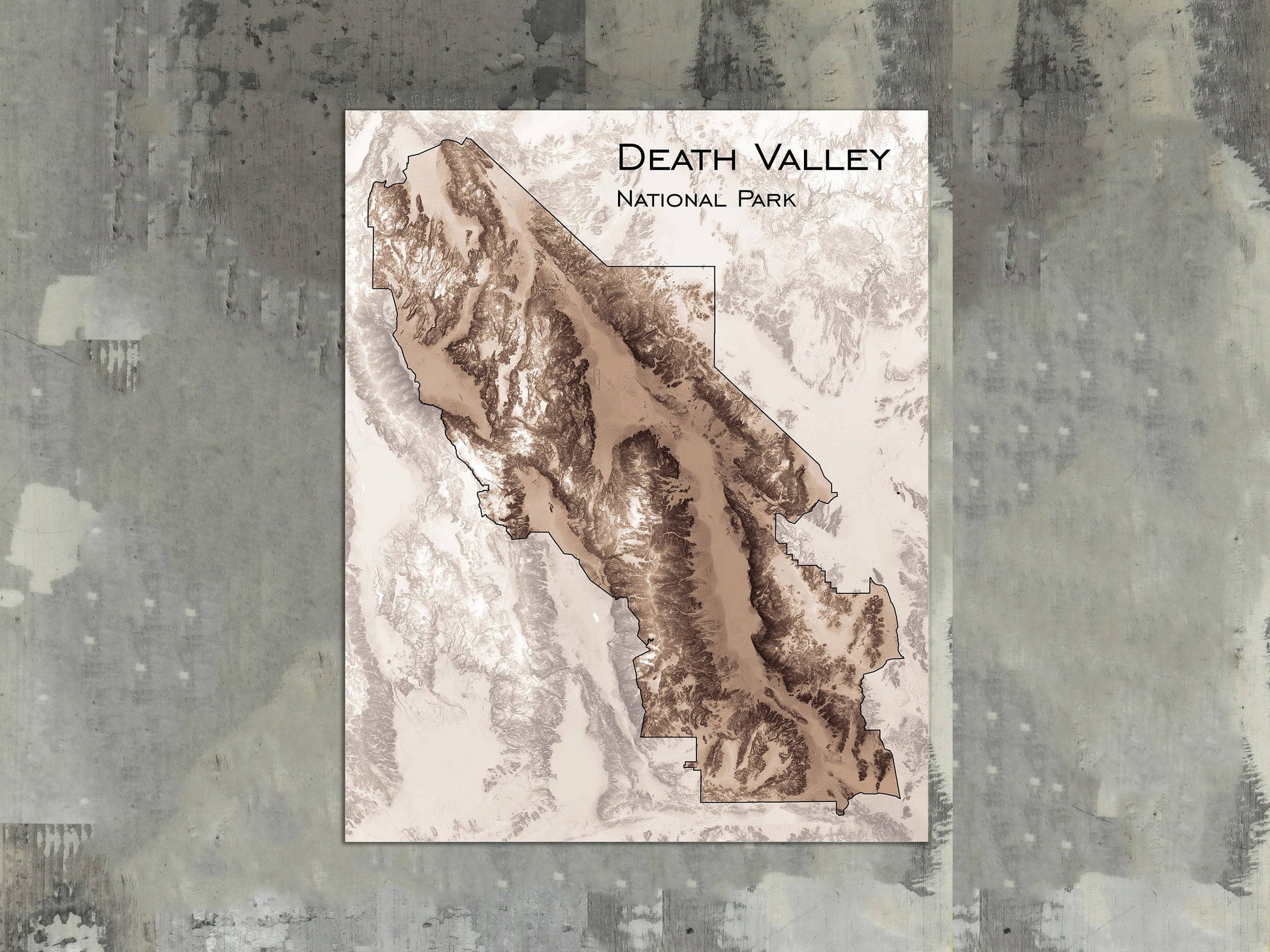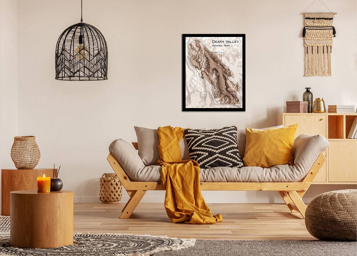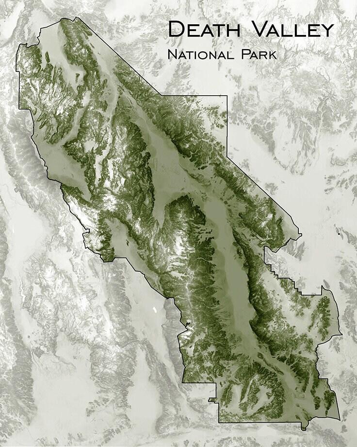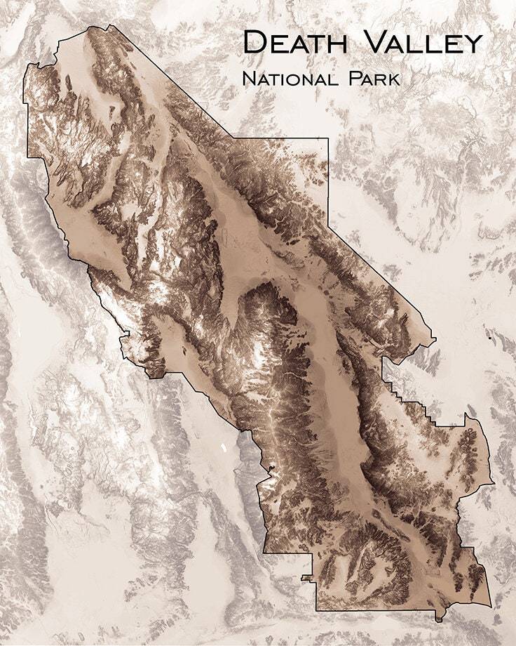 Topographic map print with our unique shading of elevation and slope to highlight natural features. Our maps have exquisite detail, whether viewed from across the room or within inches of the map.