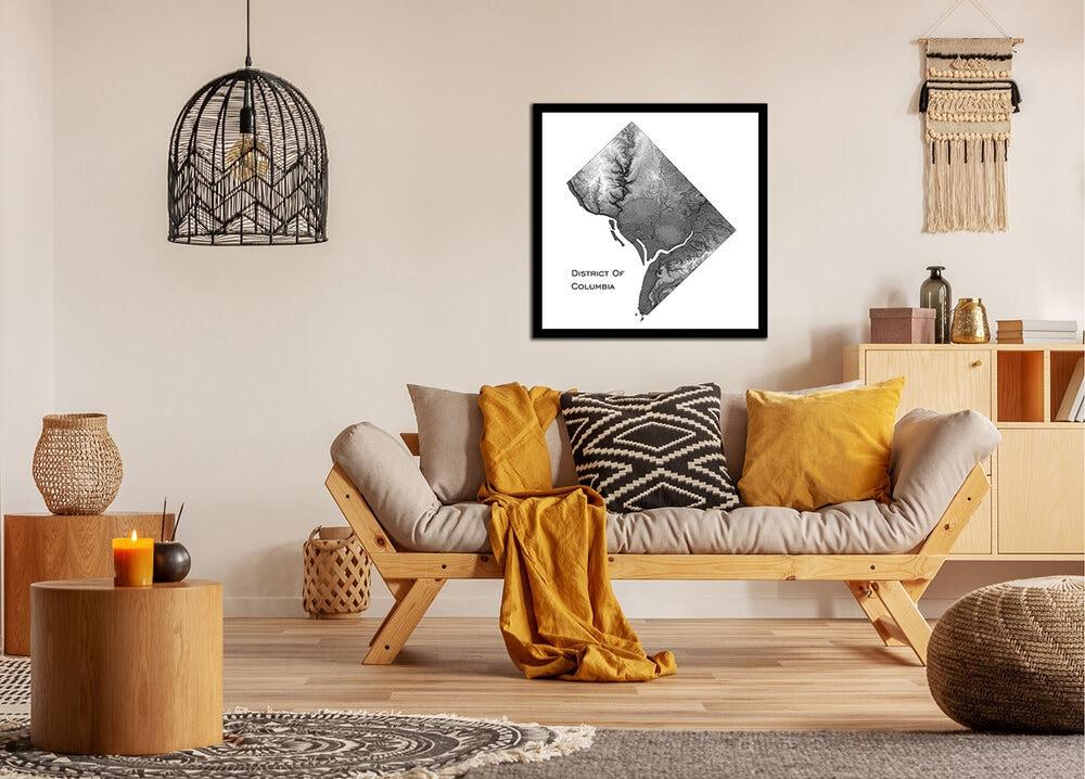 Topographic map print with our unique shading of elevation and slope to highlight natural features. Our maps have exquisite detail, whether viewed from across the room or within inches of the map.