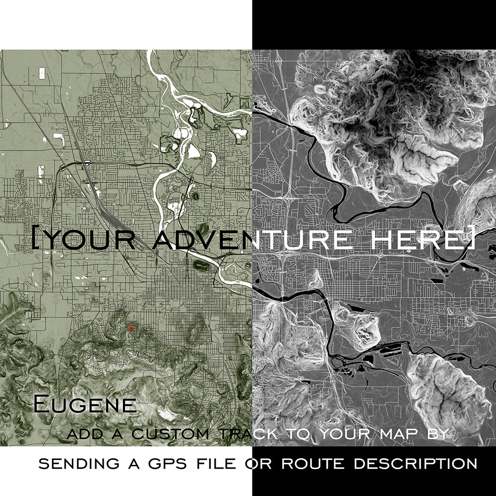 ____________________________Make any map uniquely yours by adding a custom track. Send a GPS file or give a description and we'll add it to your map. See the Custom Track Addition listing