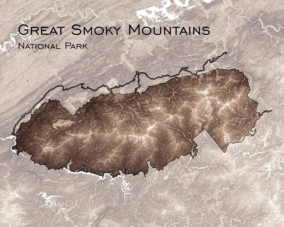 Ridge upon ridge of forest straddles the border between North Carolina and Tennessee in Great Smoky Mountains National Park.