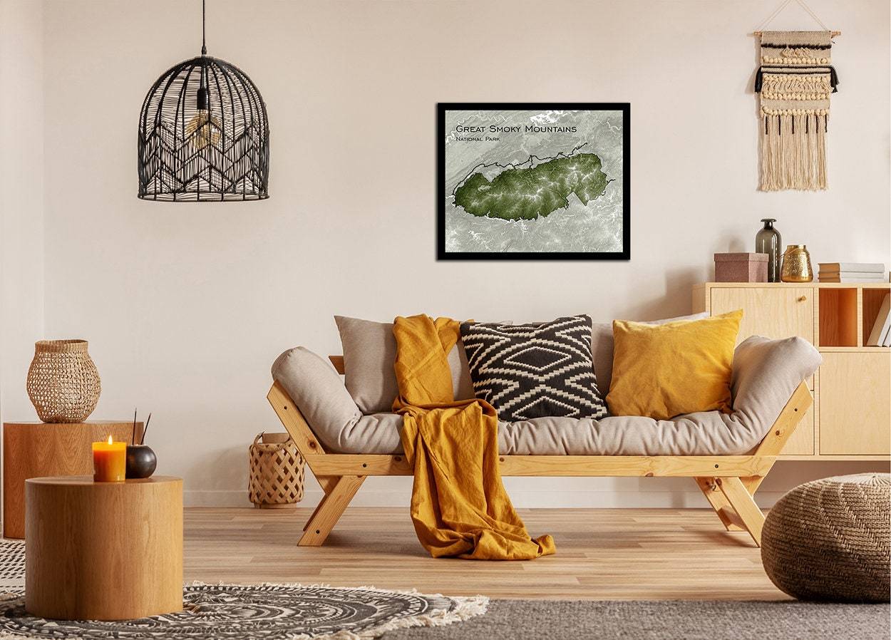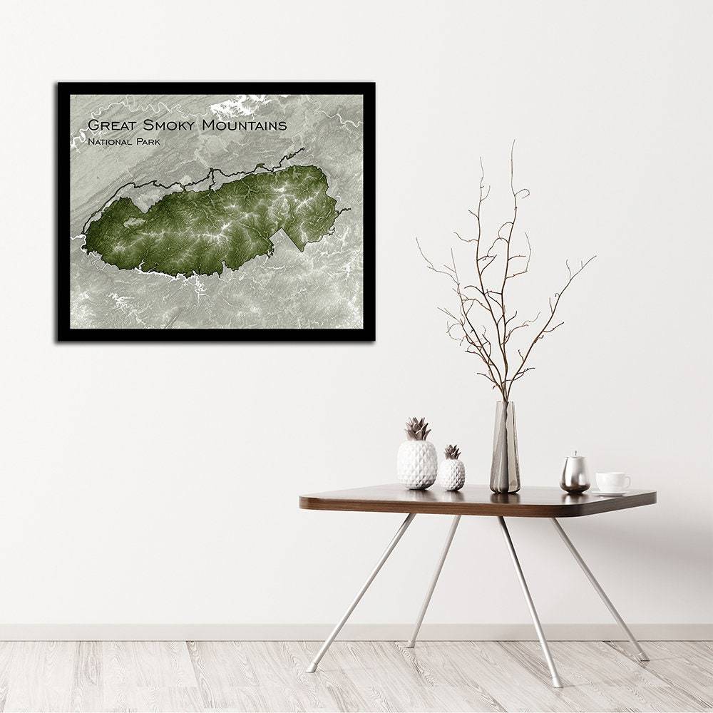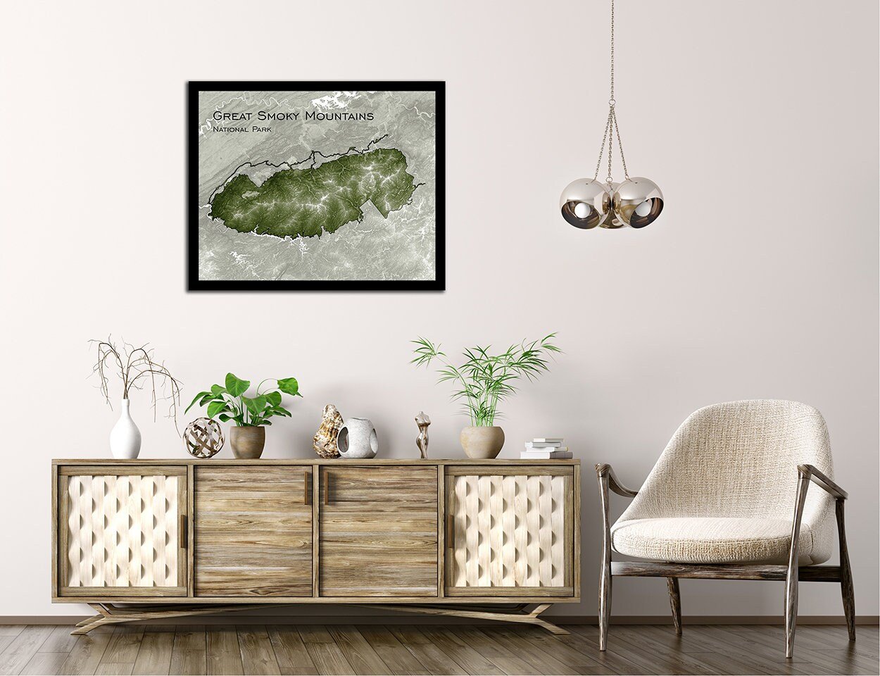 Topographic map print with our unique shading of elevation and slope to highlight natural features. Our maps have exquisite detail, whether viewed from across the room or within inches of the map.