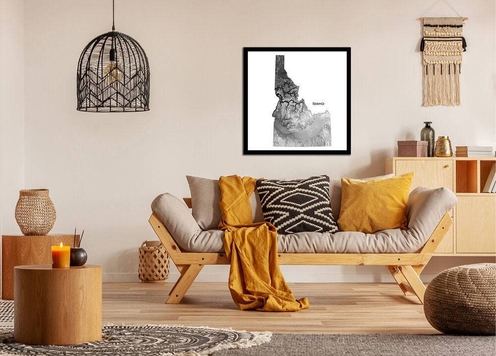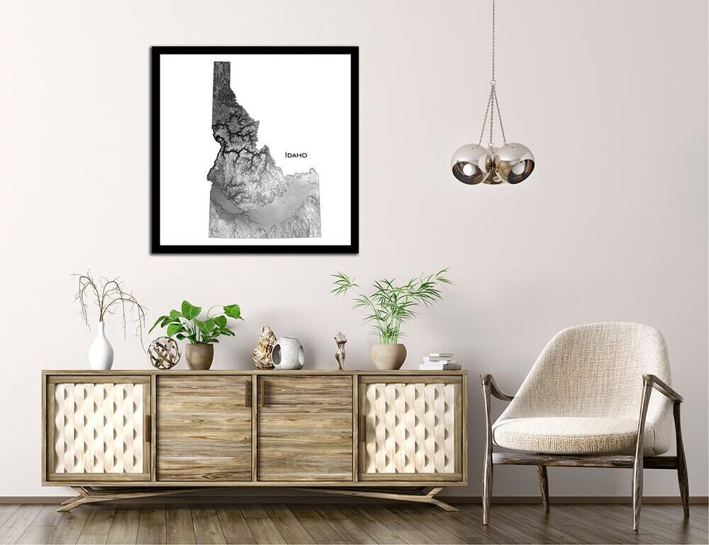 Topographic map print with our unique shading of elevation and slope to highlight natural features. Our maps have exquisite detail, whether viewed from across the room or within inches of the map.