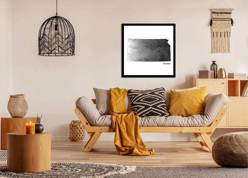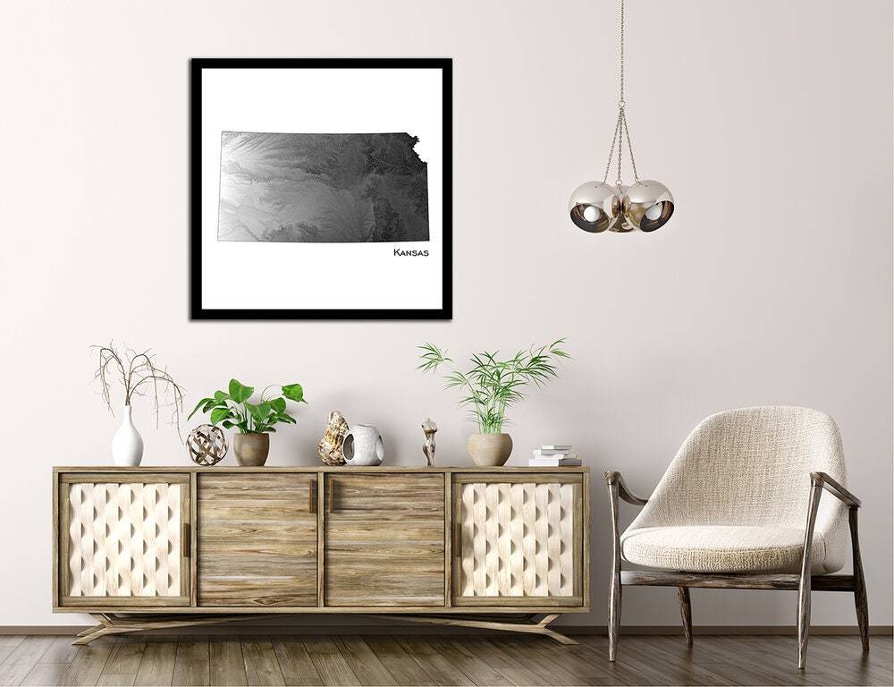 Topographic map print with our unique shading of elevation and slope to highlight natural features. Our maps have exquisite detail, whether viewed from across the room or within inches of the map.