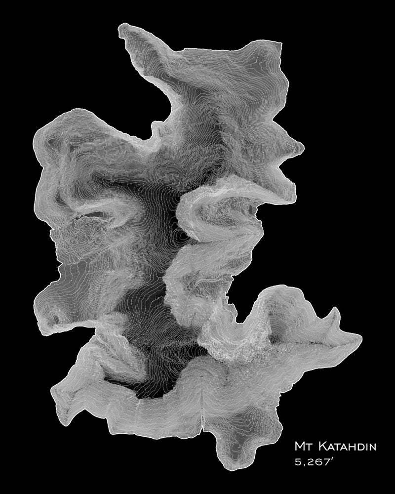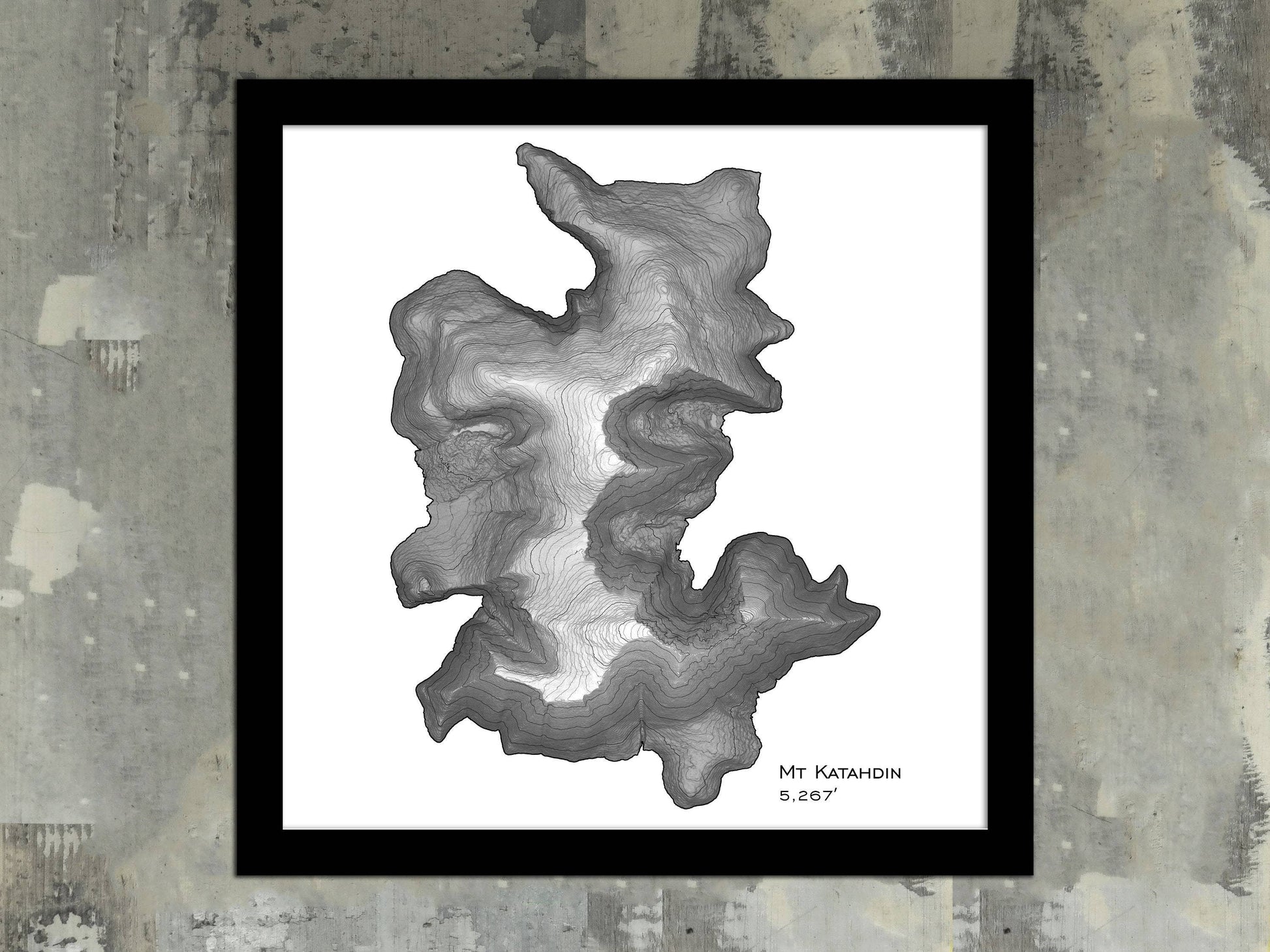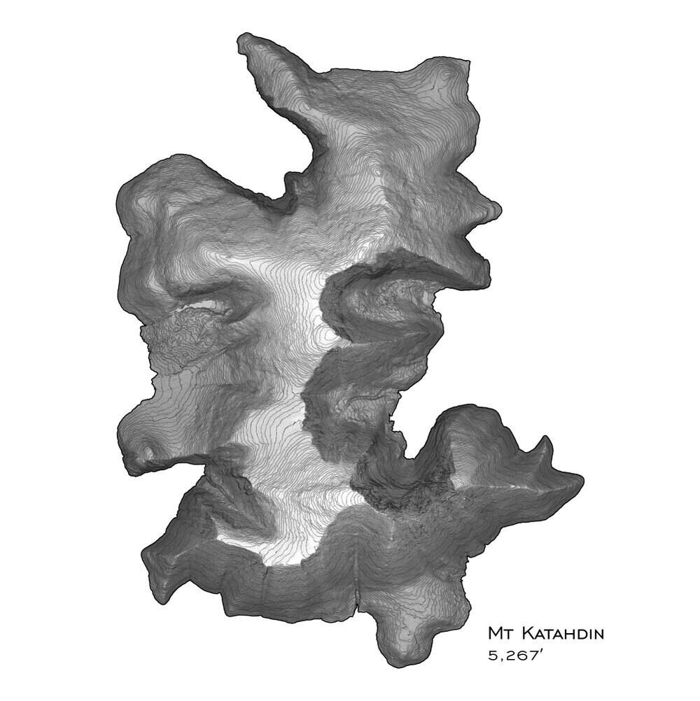 Katahdin is the highest point in Maine and marks the northern terminus of the Appalachian trail. Named by the Penobscot Indians, Katahdin's name means 'Greatest Mountain.' This map begins at an elevation of 3100ft.
