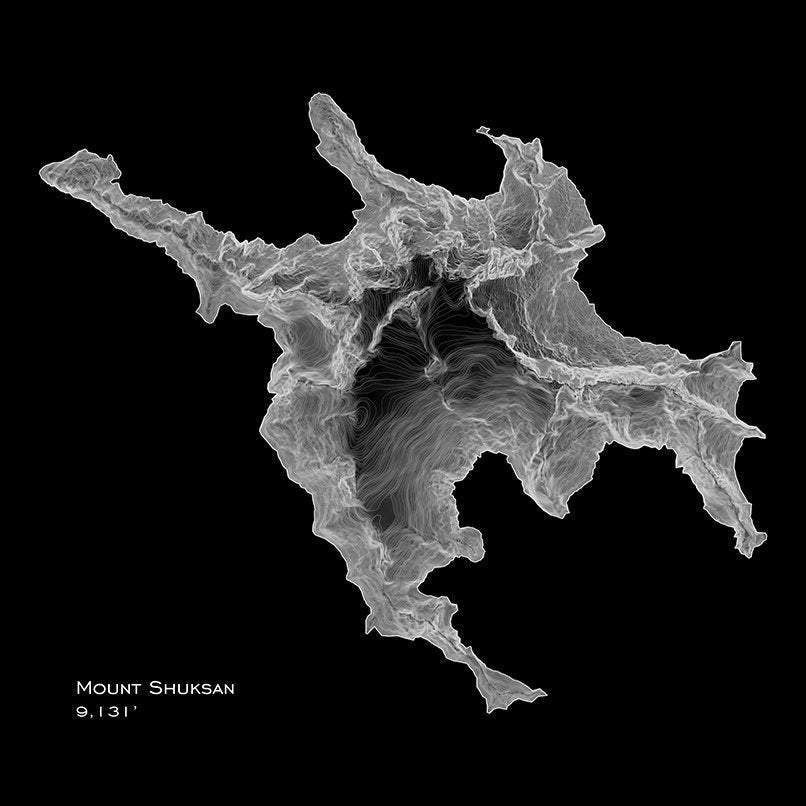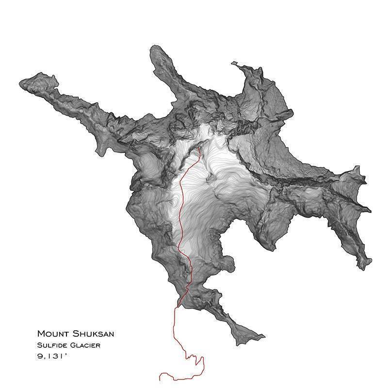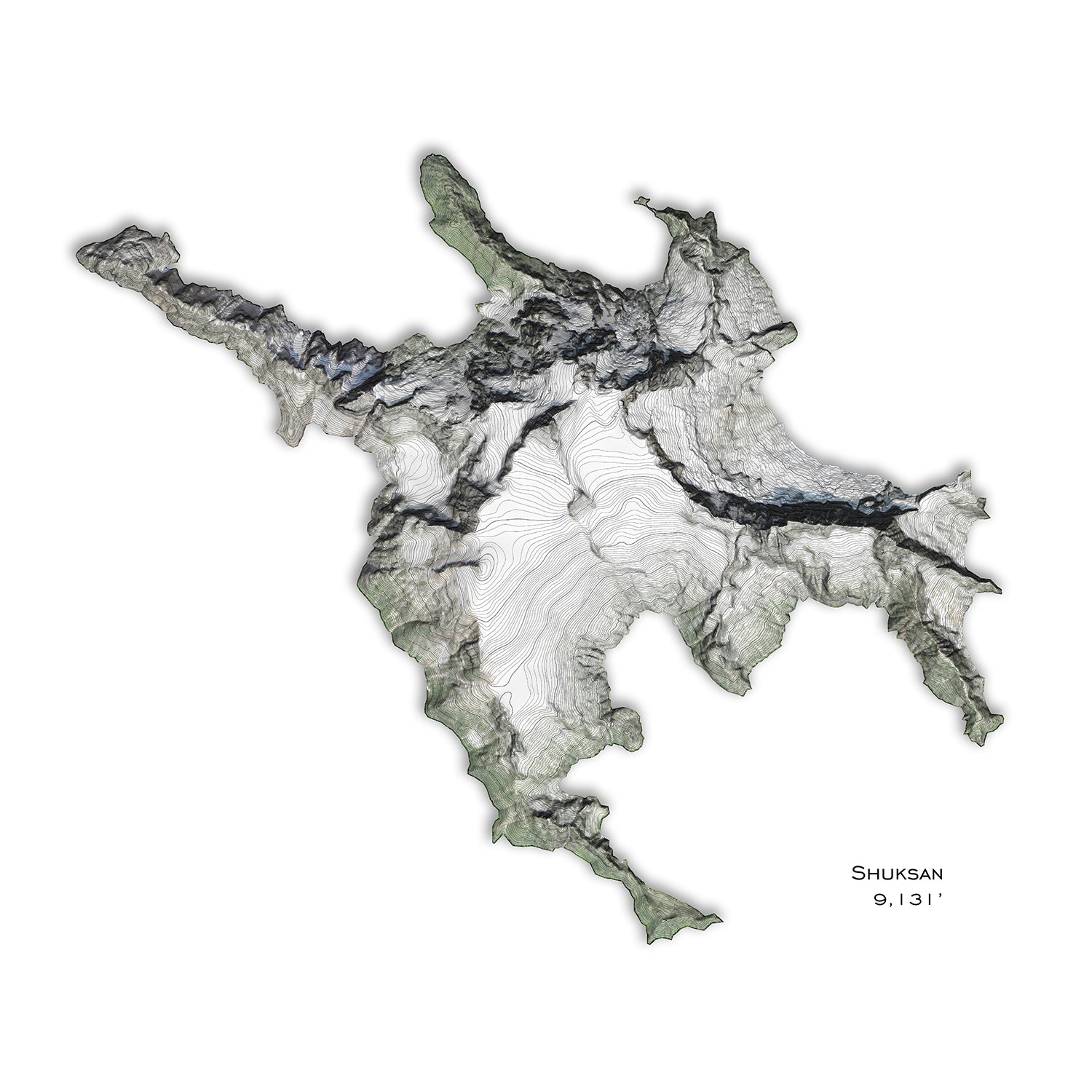 The most iconic non-volcanic mountain in the PNW and the only non-volcanic peak with 3,000+ feet above timberline. Shuksan is also the most prominent PNW peak to exclusively go by it's indigenous name (called Shuqsan by the Nooksack people). Contours every 40ft with major contours every 400ft. This map begins at an elevation of 4850ft. It is cropped at the pass between Seapho and Icy peak.