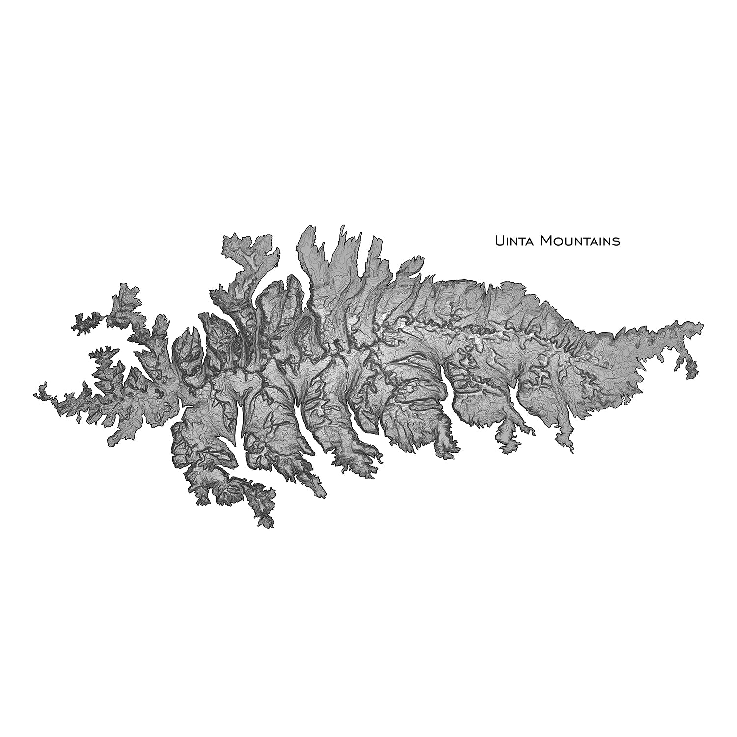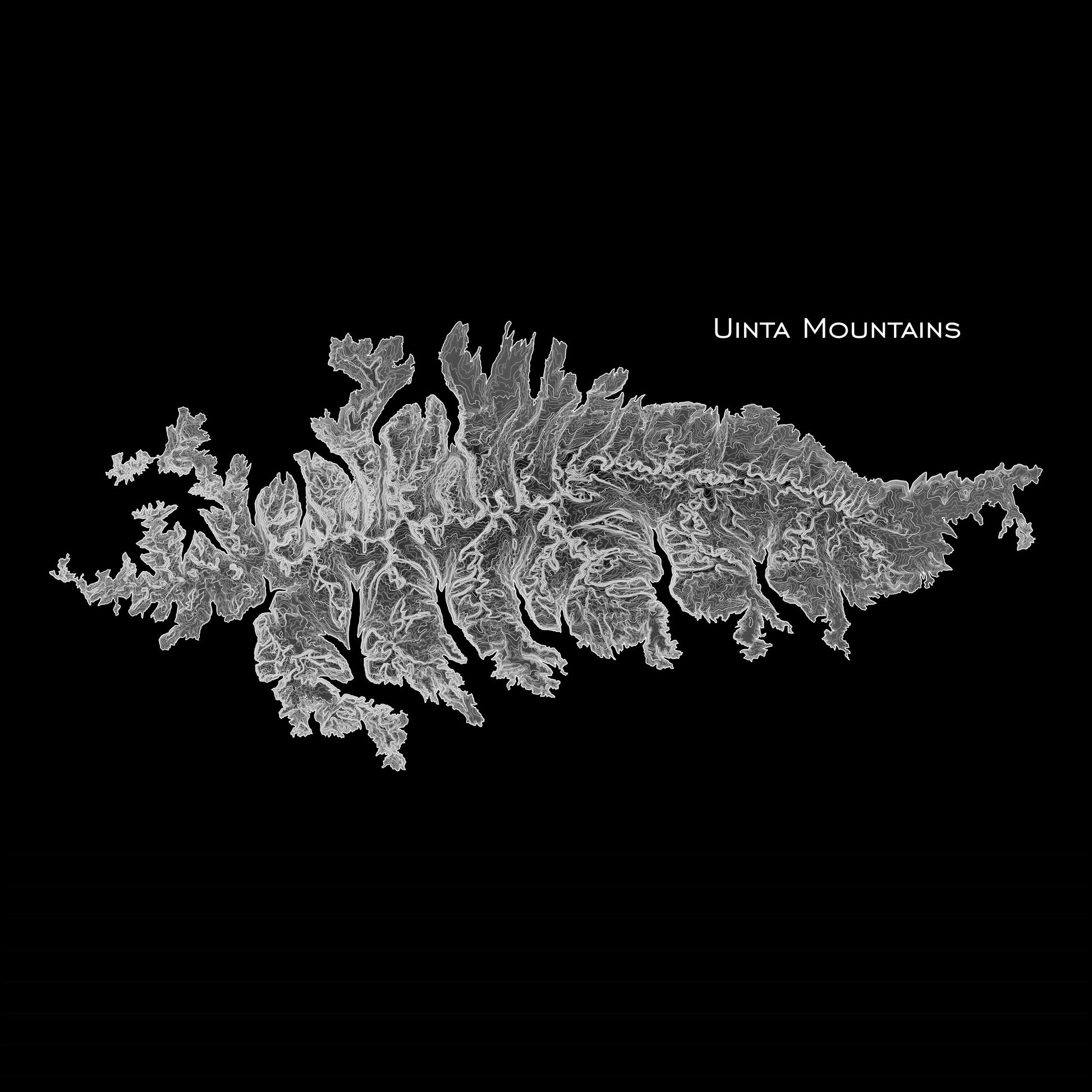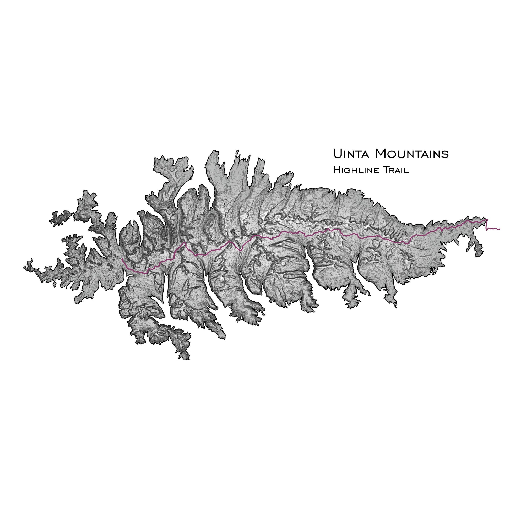 The Uinta Mountain range in northeastern Utah. This range is unusual as the highest mountain range in the contiguous United States that runs East to West. It contains Kings Peak, the highest point in Utah. Contours every 100ft.