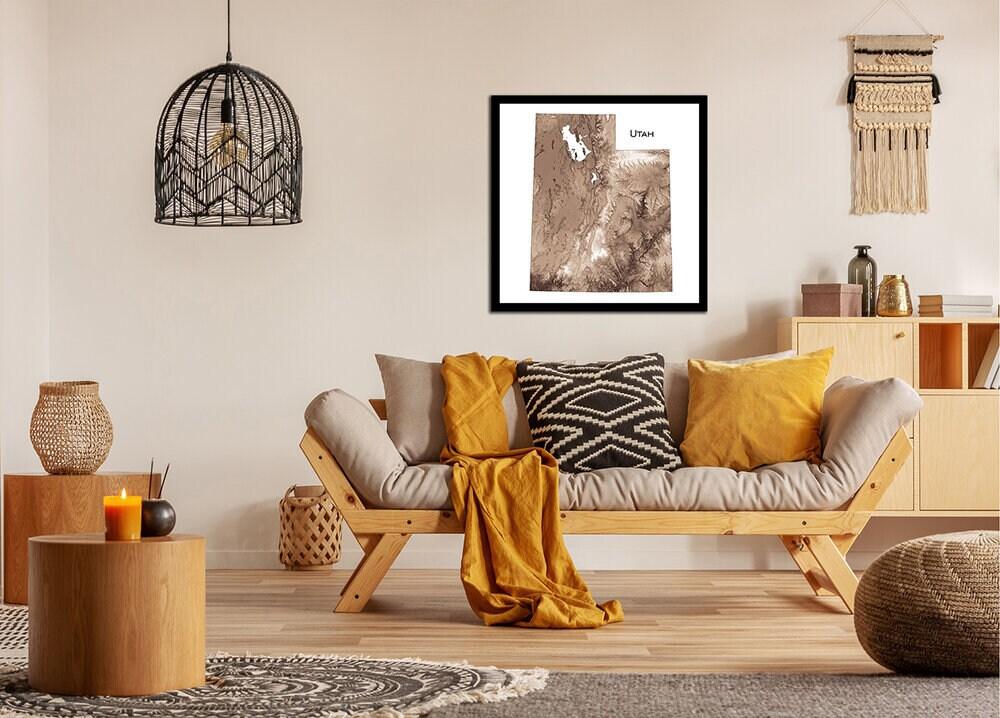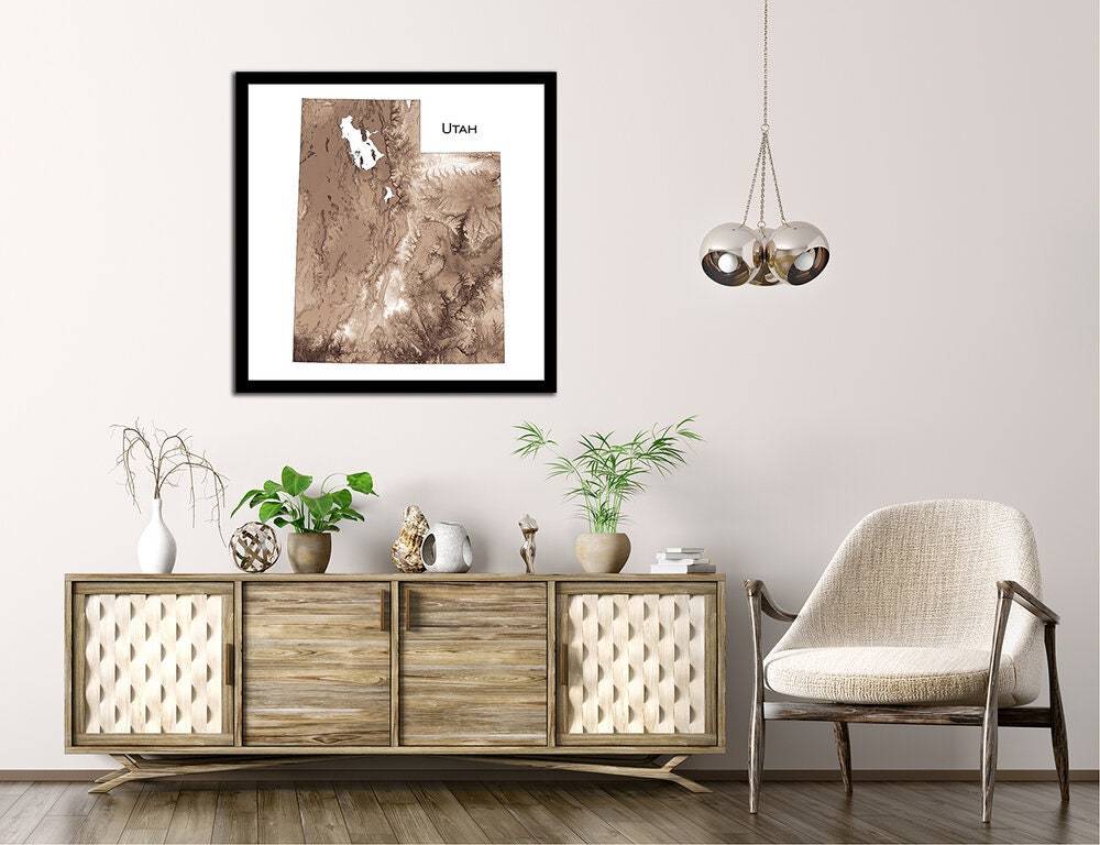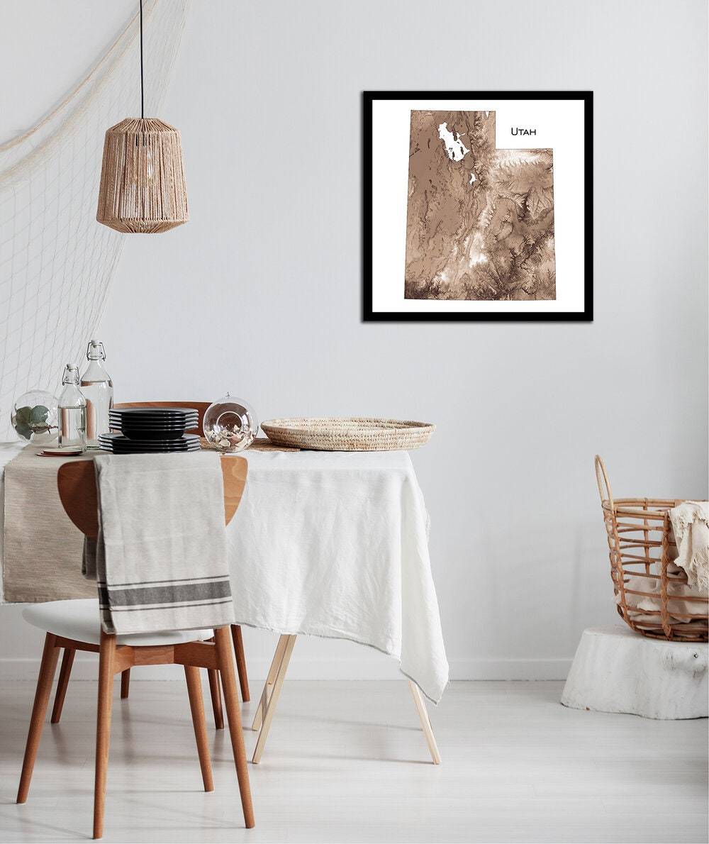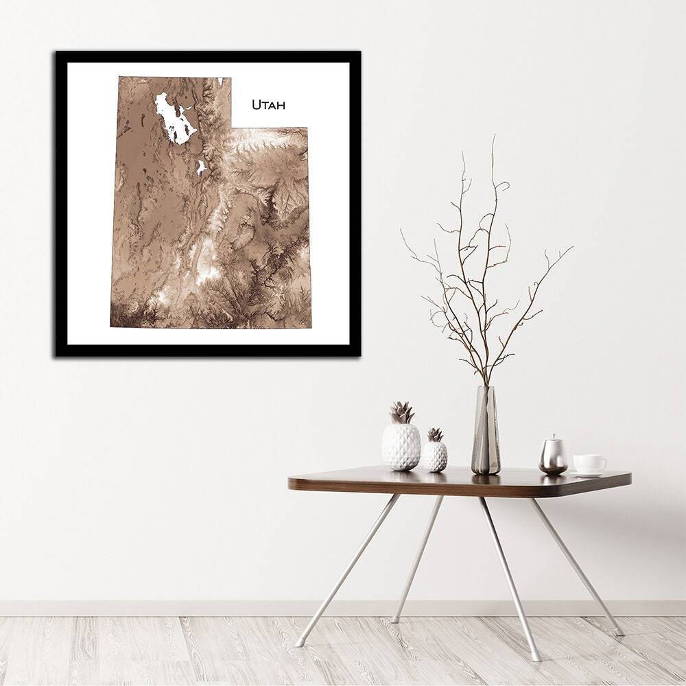 Topographic map print with our unique shading of elevation and slope to highlight natural features. Our maps have exquisite detail, whether viewed from across the room or within inches of the map.