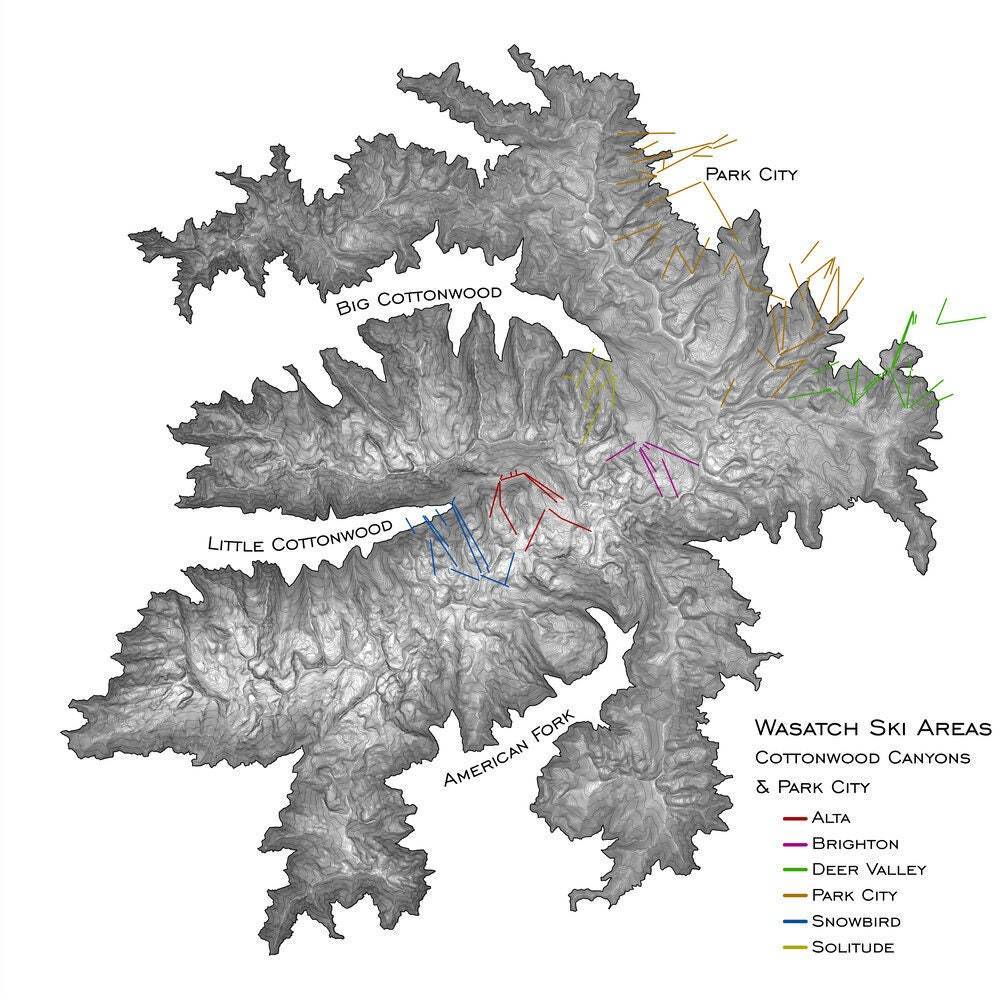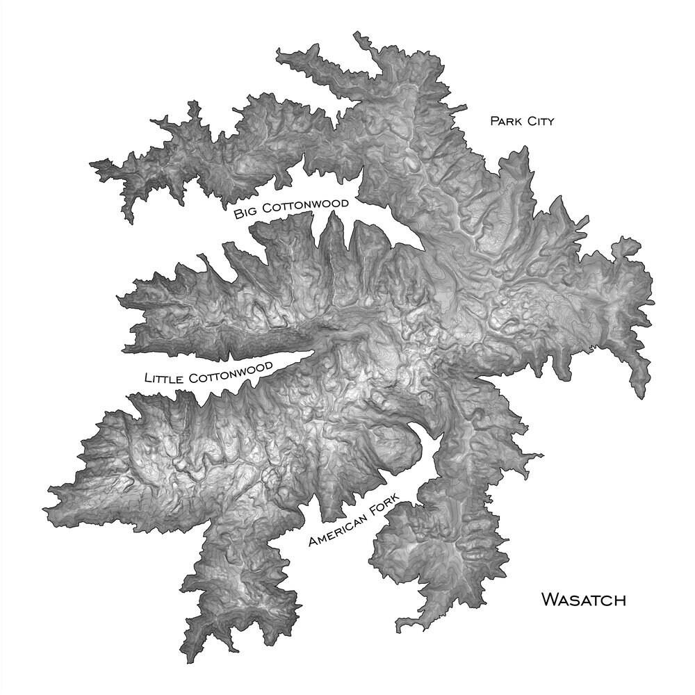 The Wasatch mountains. The Wasatch-Cache National Forest, one of the 5 most visited National Forests in the US. Many of these visitors are skiers to the numerous ski areas, which are regarded as some of the best in the world. Contours every 40ft with major contours every 400ft. This map begins at an elevation of 8100ft.