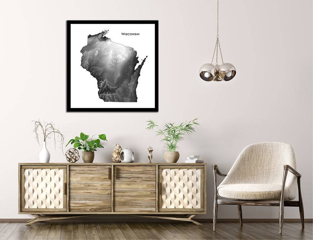 Topographic map print with our unique shading of elevation and slope to highlight natural features. Our maps have exquisite detail, whether viewed from across the room or within inches of the map.