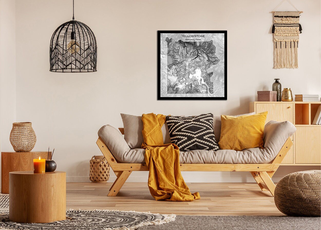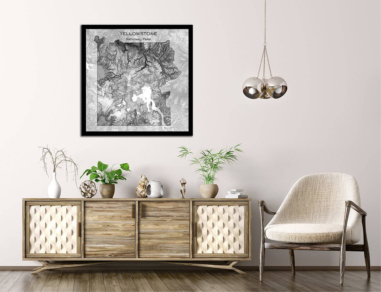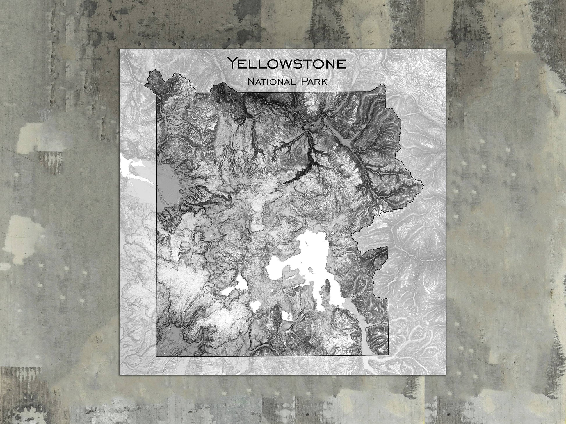 Map print of Yellowstone National Park. On March 1, 1872, Yellowstone became the first national park for all to enjoy the unique hydrothermal and geologic wonders. Thousands of hot springs, geysers, mudpots, and fumaroles dot the wild landscape.