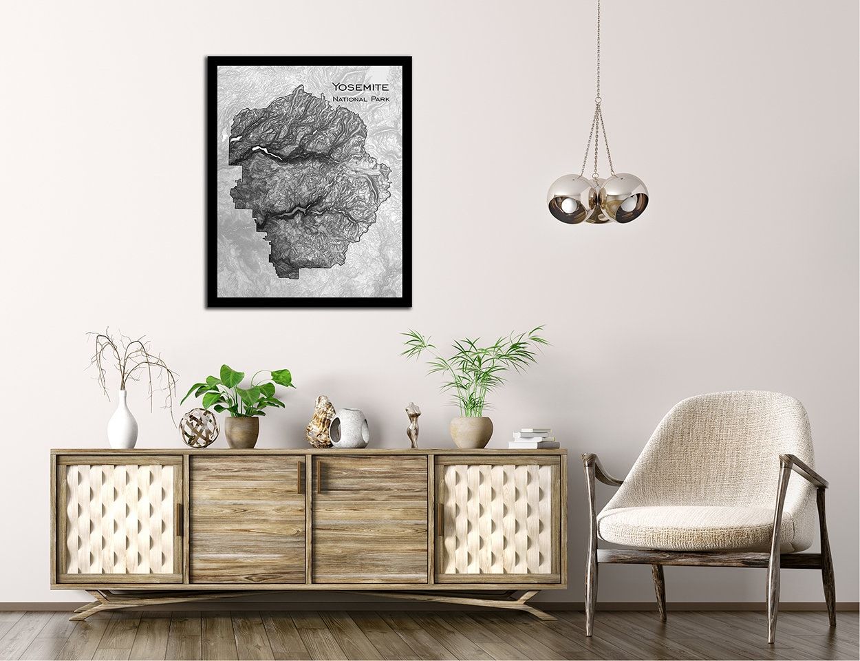 Topographic map print with our unique shading of elevation and slope to highlight natural features. Our maps have exquisite detail, whether viewed from across the room or within inches of the map.